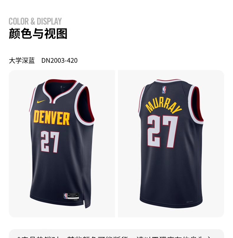 球队本色是每支球队的醒目标志,彰显其个性风采,散发与众不同的气息。2022/23 赛季丹佛掘金队 Icon Edition Nike Dri-FIT NBA Swingman Jersey 男子球衣设计灵感源自球员征战赛场所穿的球衣,融入球队细节和导湿速干的轻盈网眼布,旨在致敬悠久的篮球传统。助你在球场内外保持清凉干爽,同时彰显你对挚爱球员和比赛的热爱之情。