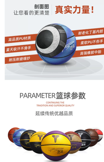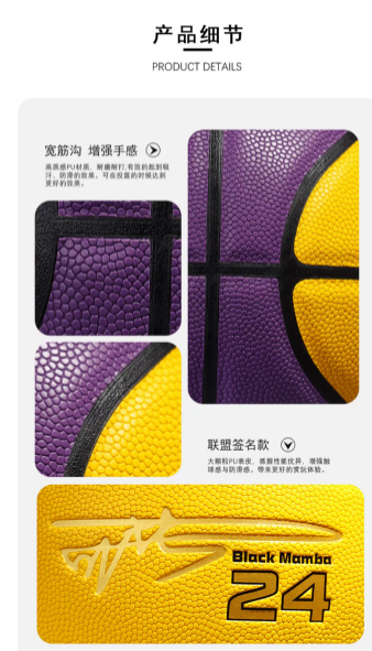 黑曼巴科比篮球24号签名7号蓝球室外真皮牛皮手感