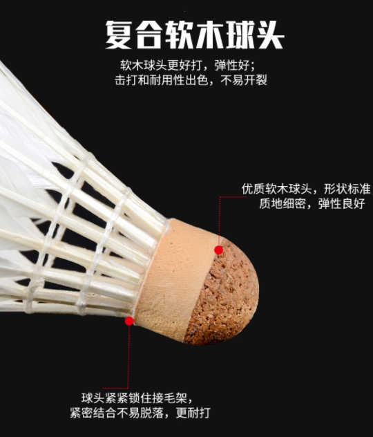 正品李宁羽毛球12只装不易烂鹅毛专业耐打王防风室外训练比赛用球