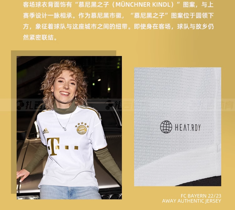 无论是以市徽或雕像的形象,“慕尼黑之子”(Münchner Kindl)从13世纪起便守望着慕尼黑这座城。缀此亮眼标志,搭配醒目金色细节,旨在为客场之旅增添家乡气息。搭载AEROREADY科技,穿着舒适。 采用再生面料打造,力求减少塑料废弃物污染。